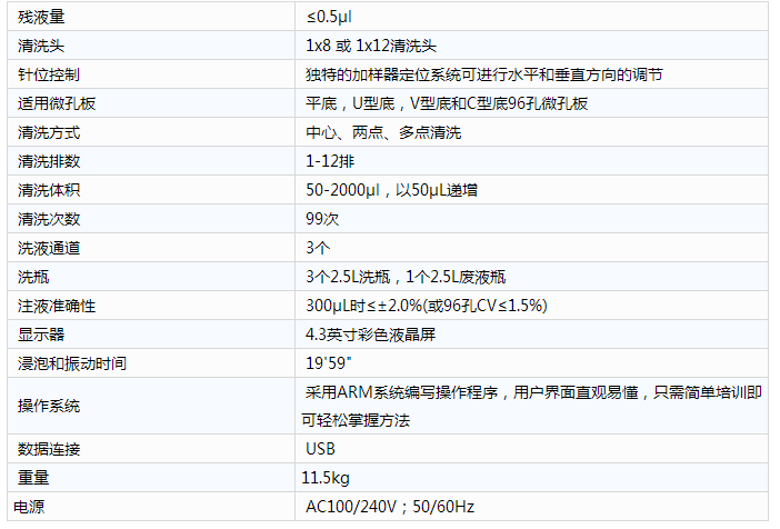 清洗頭位置參數(shù)數(shù)字化顯示并精確到0.1mm,適用國內(nèi)外各種大小不同的96孔酶標(biāo)板