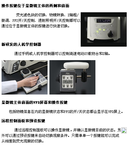 用于電動操作的所有按鍵和控制轉(zhuǎn)換器設(shè)計都非常人性化,研究者可以不受到顯微鏡操作的影響,專注于研究。