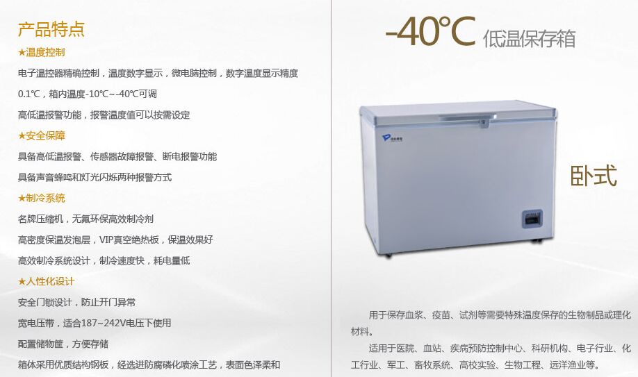 中科都菱-40度系列超低溫保存箱(臥式) MDF-40H100/40H150/40H200/40H300/40H465/40H565