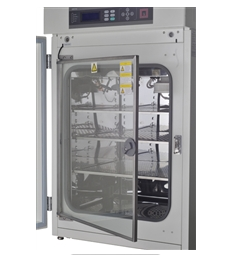 6.內(nèi)玻璃門 采用光潔透明玻璃方便觀察實物,內(nèi)玻璃門具有加熱功能,防止玻璃門內(nèi)部產(chǎn)生冷凝水,防止微生物生長,有可靠的門閂鎖住內(nèi)玻璃門有力保證二氧化碳的密封性,確保細胞培養(yǎng)條件.
