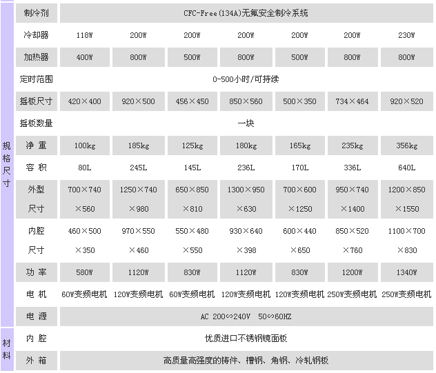 無線通訊與電腦聯網 + 曲線顯示 + 八段編程 + 打印輸出 + 恒濕 + 光照