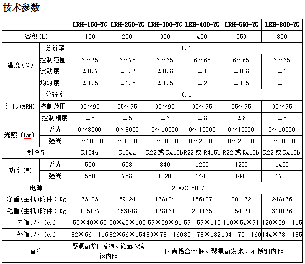 4.LRH-300-YG、LRH-400-YG、LRH-550-YG、LRH-800-YG可以定制控制范圍:0~55℃(無光照)。2000元