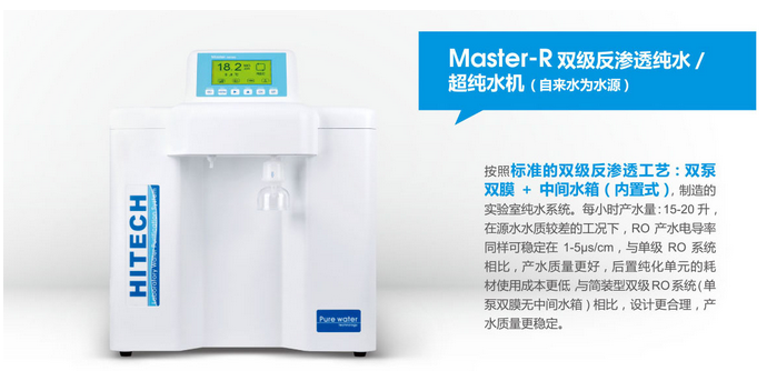 特點與優(yōu)勢 ?全自動微電腦控制系統(tǒng),多級菜單式操作 ?超大背光式LCD液晶屏(分辨率:240×128,尺寸:106×57mm),全程實時動畫式工作模式顯示 ?在線3路水質(zhì)監(jiān)控,實時監(jiān)測源水、RO反滲透水、DI去離子水/UP超純水水質(zhì) ?國內(nèi)特有超純水全管路消毒程序,只需加入消毒藥片,即可啟動一鍵消毒程序,保證取得高質(zhì)量純水 ?國內(nèi)獨有的上班、下班兩種工作模式,保證供水量充足 ?全自動RO膜防垢沖洗程序,延長RO膜使用壽命 ?無水報警,水滿報警,源水、RO水/高純水、超純水(參數(shù)可隨意設(shè)定)超標報警 ?耗材壽命終結(jié)報警,故障自動檢測,提供安全保證 ?超純水循環(huán)系統(tǒng)可自由啟動、關(guān)閉的,保持系統(tǒng)的低細菌污染水平 ?工廠、客戶二級密碼,系統(tǒng)設(shè)置均由密碼保護,防止未經(jīng)授權(quán)的更改 ?預處理、RO膜、UV燈和超純化柱的壽命可設(shè)定,顯示耗材已用和剩余時間,耗材到期更換自動提醒,避免水質(zhì)下降 ?特設(shè)定時定質(zhì)取水功能(定時:1-99min;定質(zhì):0.1-18.2MΩ.cm) ?RS232/USB接口(選配),自動記錄一整年水質(zhì)資料,整機符合 GLP ?多種規(guī)格儲水桶可選,滿足不同水量需求 ?一體化成型塑料機箱,人體工程學設(shè)計,水電分離結(jié)構(gòu) ?預處理、RO、超純化組件,采用模塊式獨立結(jié)構(gòu),系統(tǒng)維護、濾芯更換更加便捷,符合GLP規(guī)范 ?純水管路、接頭均獲NSF認證 ?獨創(chuàng)超長壽命復合KDF預濾柱,可實現(xiàn)1年不用更換,運行成本降低 ?獨創(chuàng)的RO膜組件設(shè)計,采用美國陶氏DOW原裝進口RO膜片,實現(xiàn)了RO膜的長壽命與高品質(zhì)水質(zhì)的結(jié)合 ?獨有的全新可獨立拆解的一體化4柱式超純化柱組模塊,采用美國陶氏DOW原裝進口核子級樹脂,時刻保證頂級水質(zhì) ?雙波長(185nm&254nm)UV紫外燈組件(進口燈管),有效殺菌,降低TOC,增強系統(tǒng)適用范圍 ?MWCO5000DUF超濾組件(原裝進口),有效去除熱源(內(nèi)毒素),可用于精密的細胞培養(yǎng)和IVF (0.45+0.1)μm進口PES聚醚砜復合濾膜終端除菌過濾器,保證水質(zhì)絕對無菌