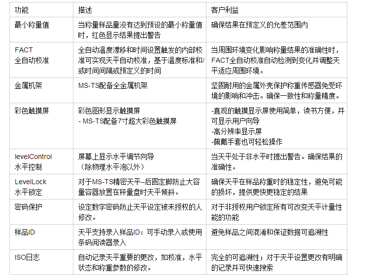 方便的水平調(diào)節(jié)–除了隨時(shí)可見的前置水平泡以外,新的水平控制系統(tǒng)在天平處于非水平時(shí)自動(dòng)提出警告,并且在屏幕上顯示水平調(diào)節(jié)指導(dǎo)。