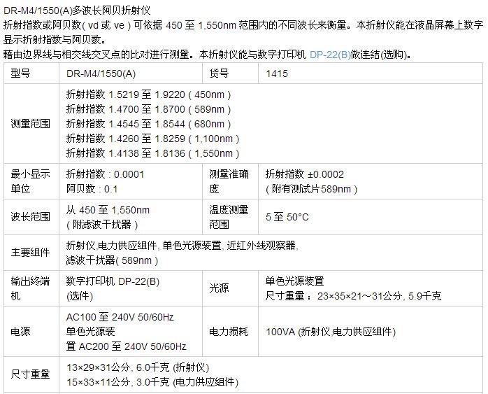 ATAGO (愛拓) DR-M4/1550(A) 臺式數字式多波長近紅外線阿貝折射儀