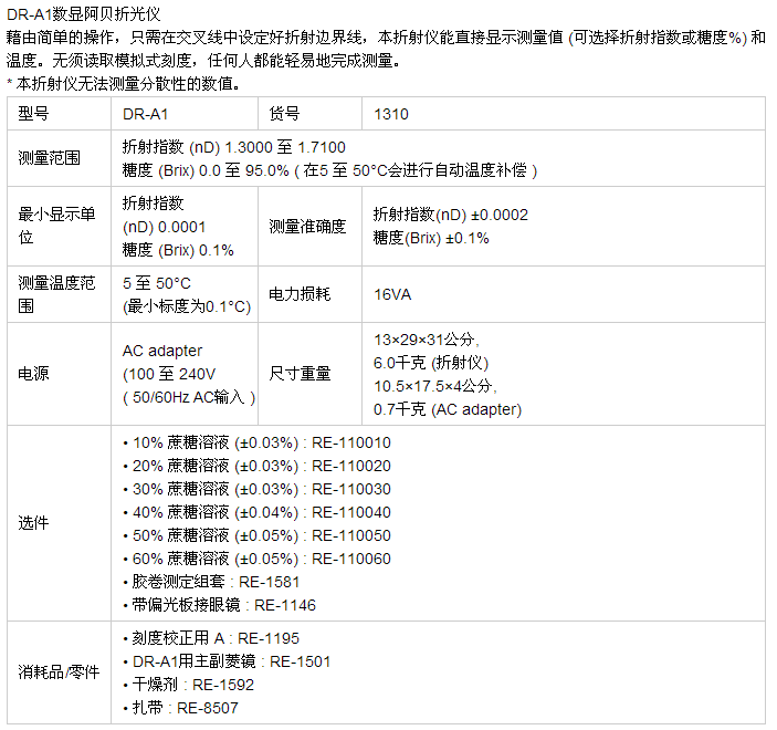 ATAGO(愛拓)DR-A1臺式數(shù)字式阿貝折射儀