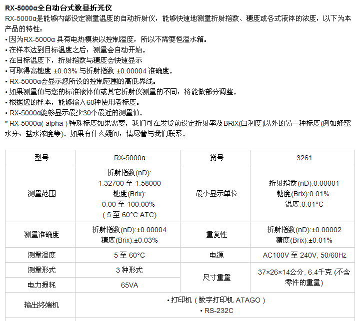 ATAGO(愛拓)RX-5000α全自動臺式數(shù)顯折光儀